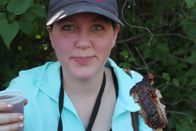 The other favored crowd-pleaser was the corn. It had a salty, spicy rub and was still in the husks. It made for awkward eating, but I think we decided that greasy fingers were going to be the outfit of the day here. (People were walking around with big BBQ drips on the front of their clothes, but they also wore huge grins -- so there's that.)