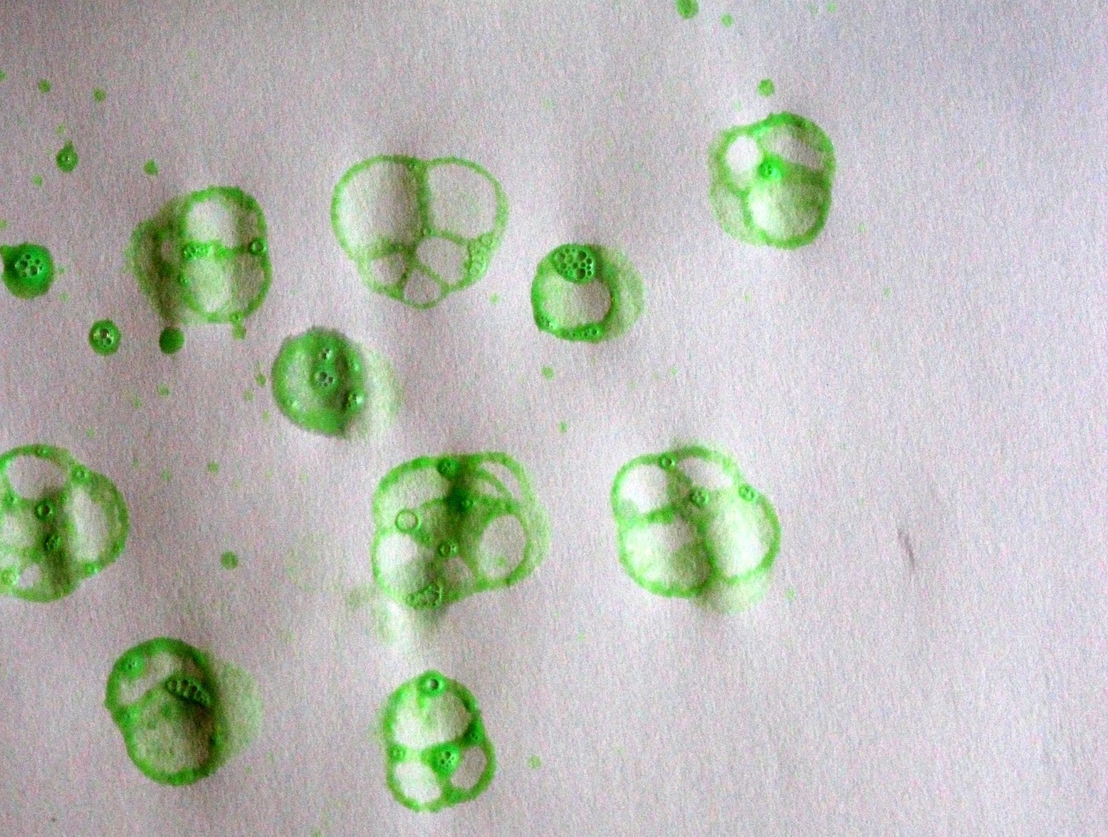 Not happy with the deepness of your color? Add a tiny bit more paint, checking for consistency of the solution. If you ever find that the bubbles aren't forming, adjust with a bit more soap. It's a delicate balance, but there is no exact formula.